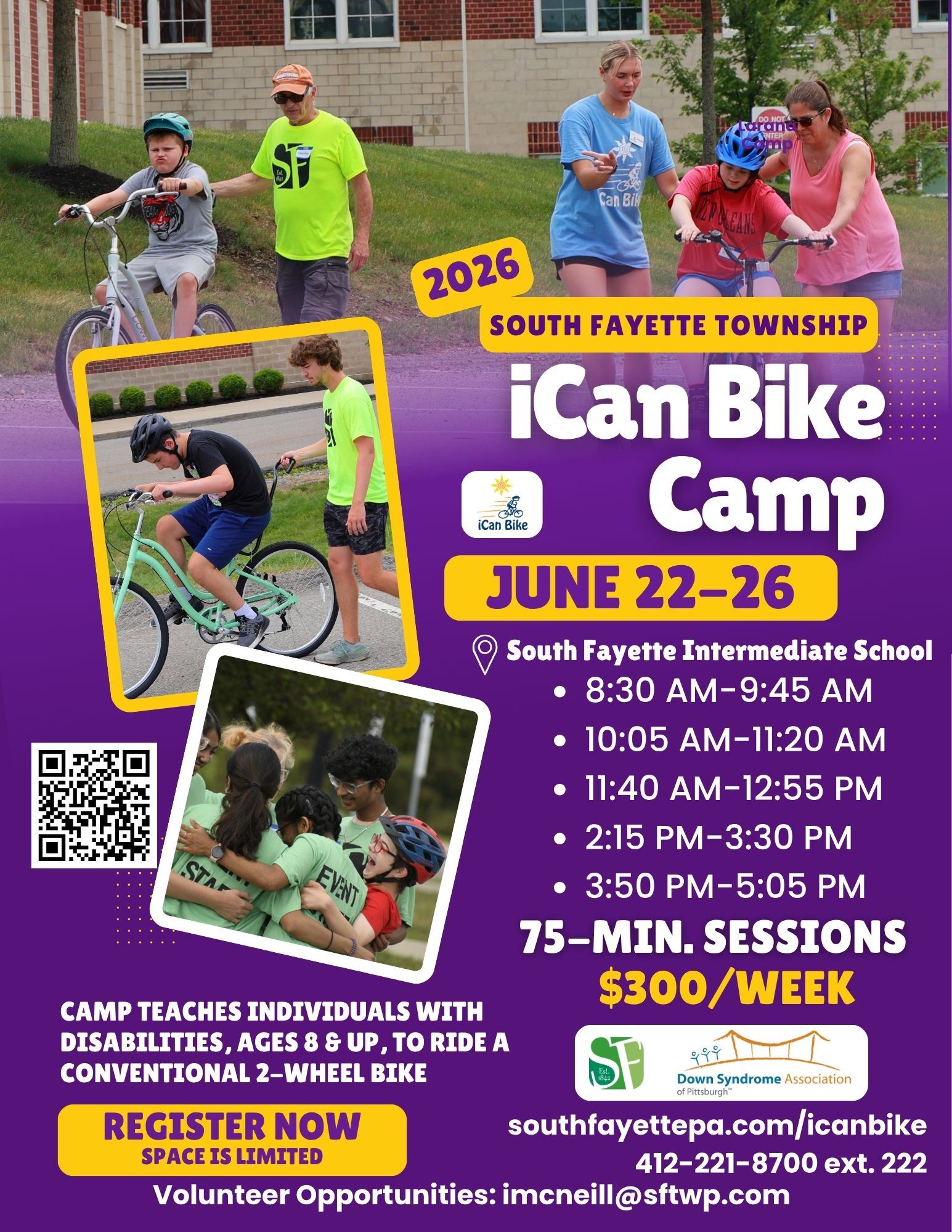 This bike camp is available to residents of South Fayette Township and to members of the Down Syndrome Association of Pittsburgh.